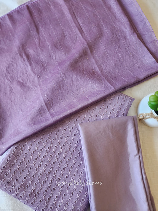 Semi raw silk hakoba material unstitched salwar set | Lavender | H1