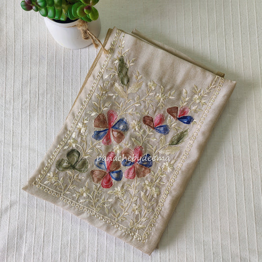 Unstitched salwar set with hand painted flowers | Cream |HS1
