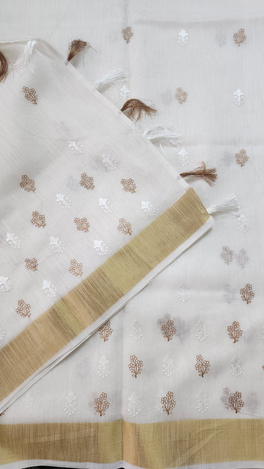Chanderi cotton gold and white embroidery | design2 | CC101