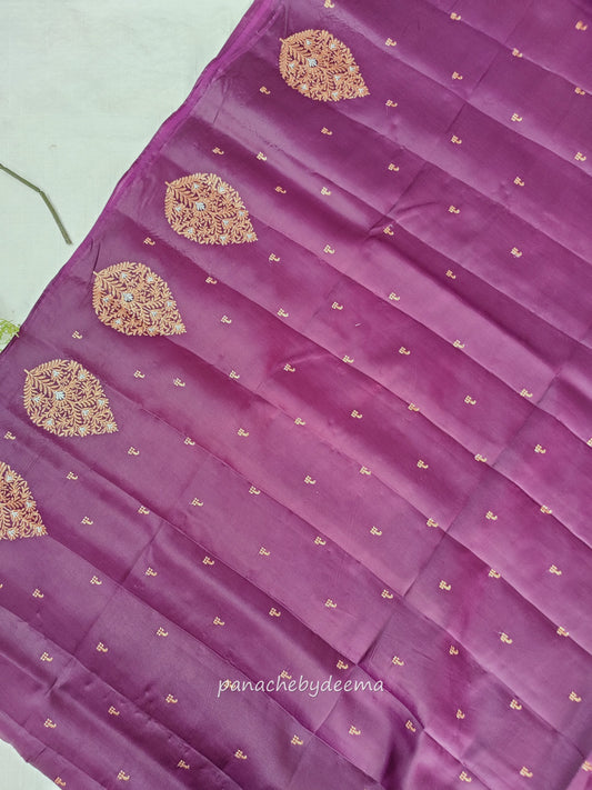 Beautiful soft semi silk saree with copper zari embroidery | Dark purple | MS108