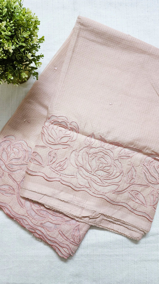 Kota applique saree with scalloped borders | Peach | KAP1