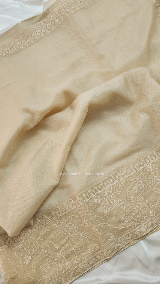 Silky Kota saree with embroidery | Cream | KAP8