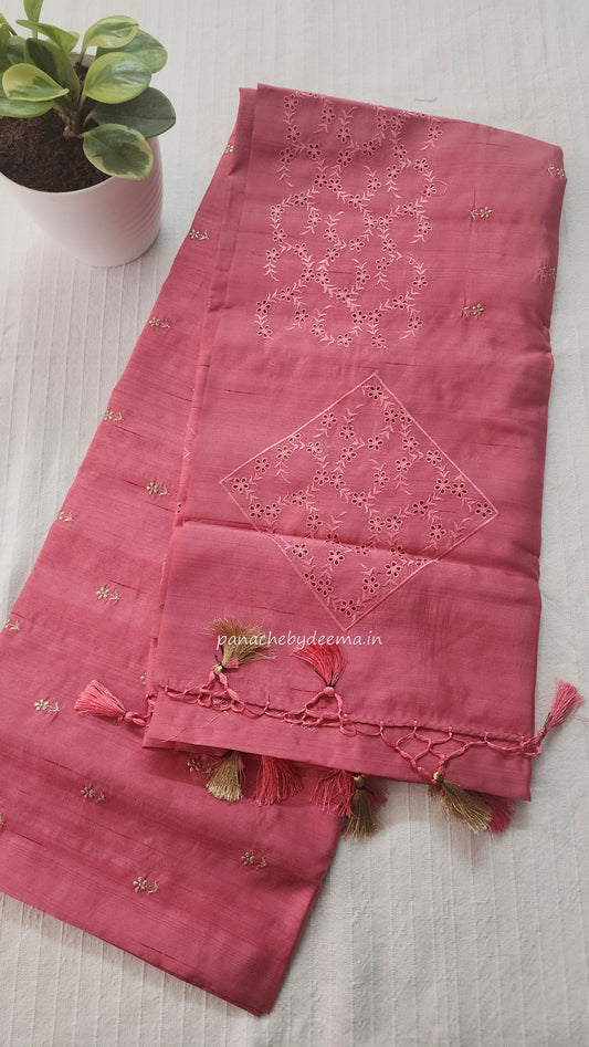 Semi raw silk designer saree with intricate cut work borders and embroidery | Light pink | DY11