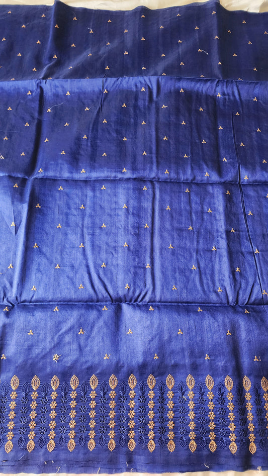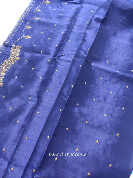 Semi raw silk designer saree with cut work borders and embroidery | Dark Blue | DY6