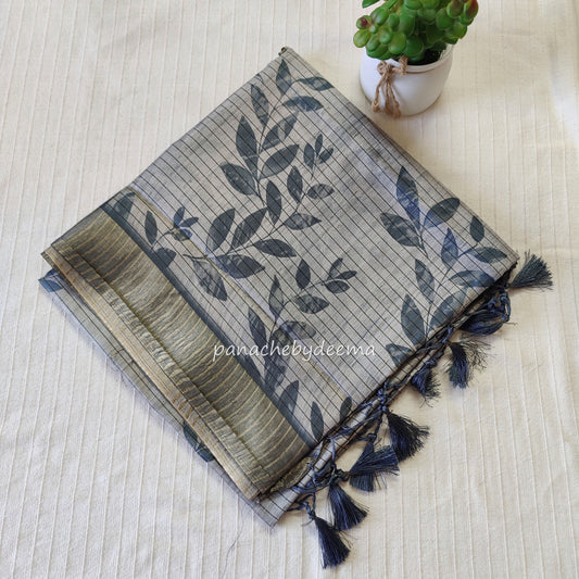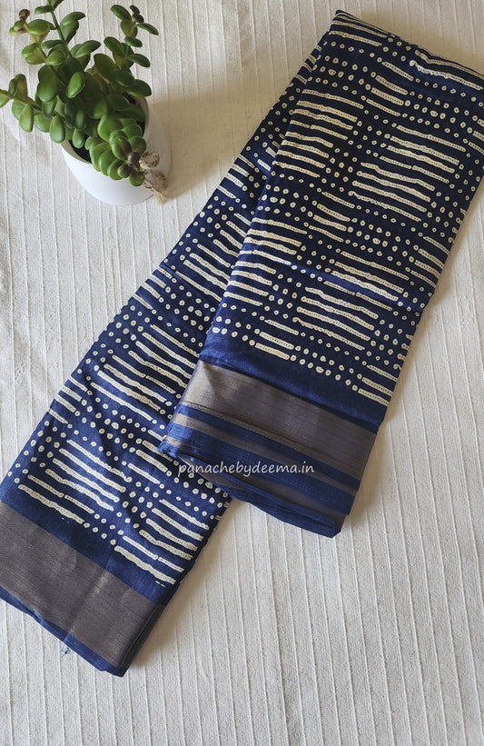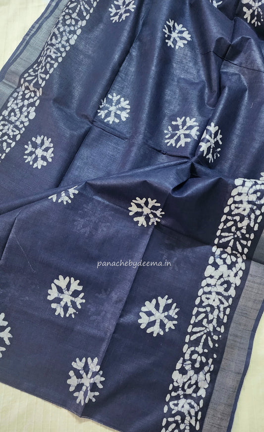 Semi linen saree with batik design | Blue | OR1