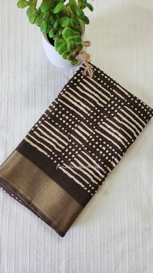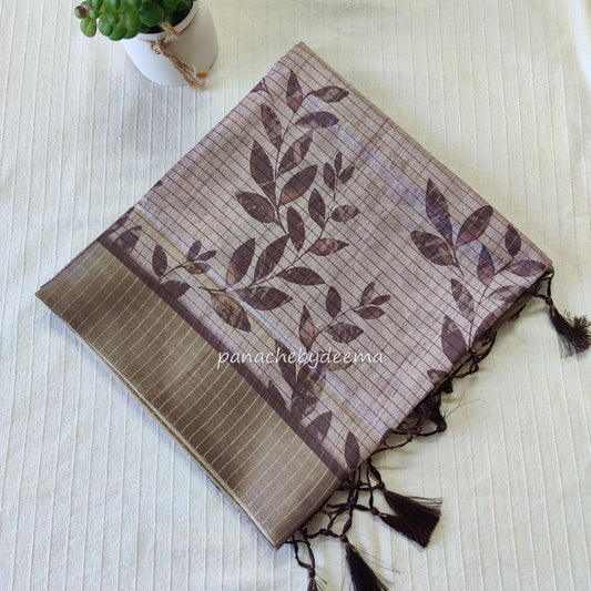 Semi silk saree with golden zari checks | Brown| HL4