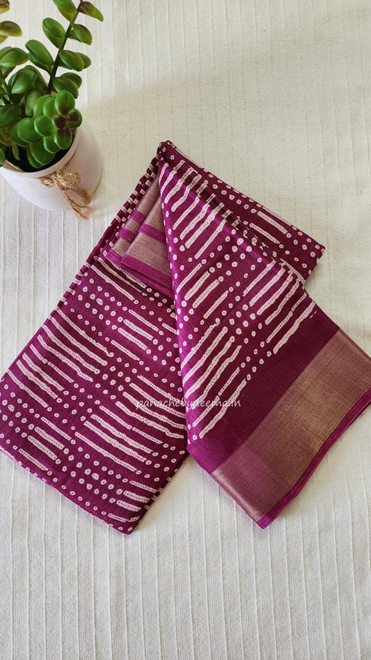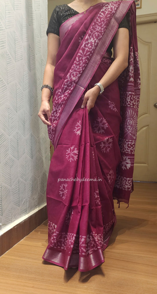 Semi linen saree with batik design | Pink| OR2