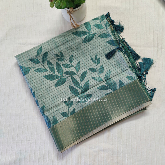Semi silk saree with golden zari checks | Green | HL1