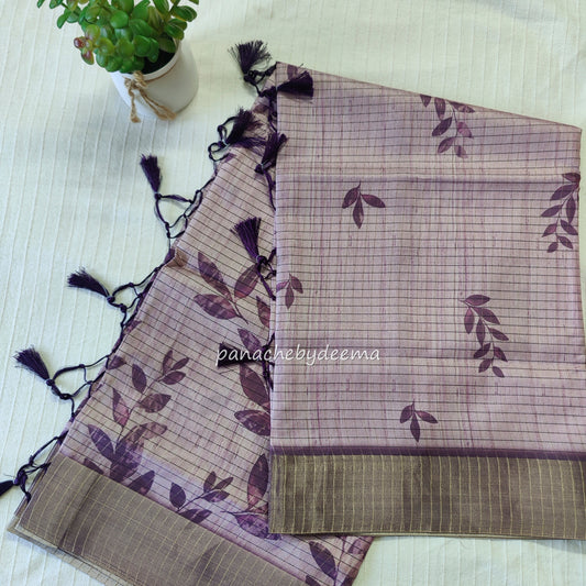 Semi silk saree with golden zari checks | Purple | HL3