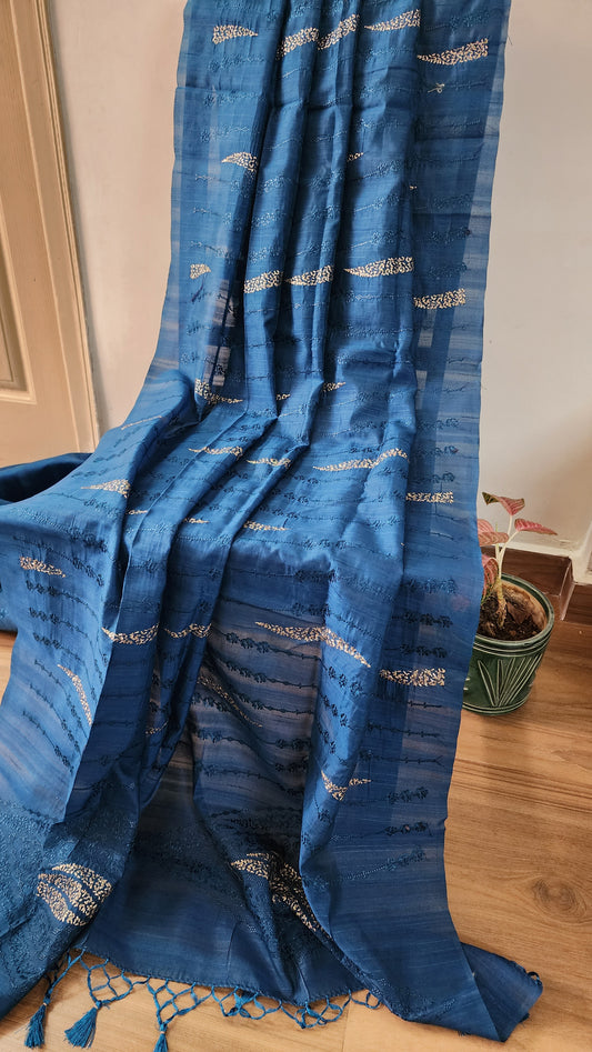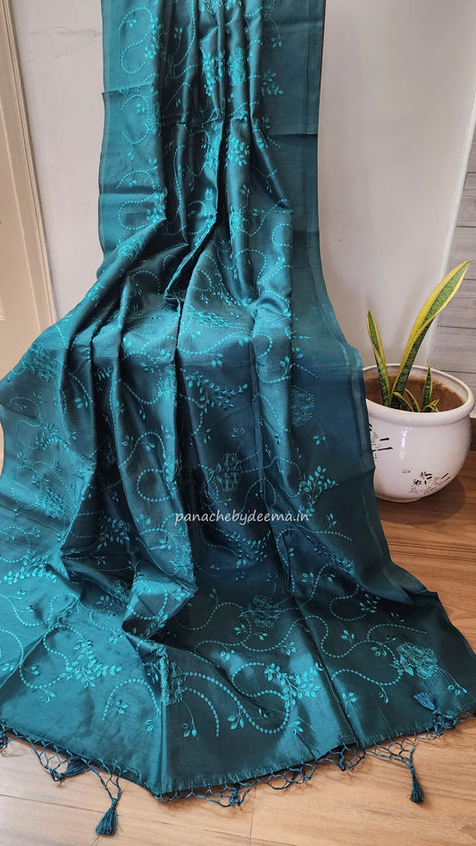 Matka silk designer saree with embroidery | Teal blue | MT14