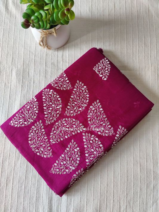 Beautiful georgette plain saree with scalloped borders, comes with heavy embroidery and sequins work blouse| Rani pink|S2