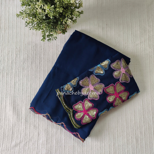 Beautiful georgette plain saree with scalloped borders, comes with heavy embroidery and sequins work blouse| Blue |S5