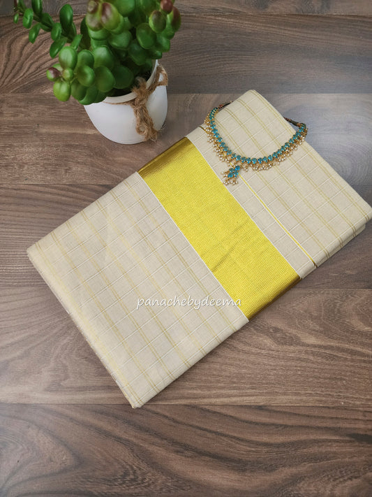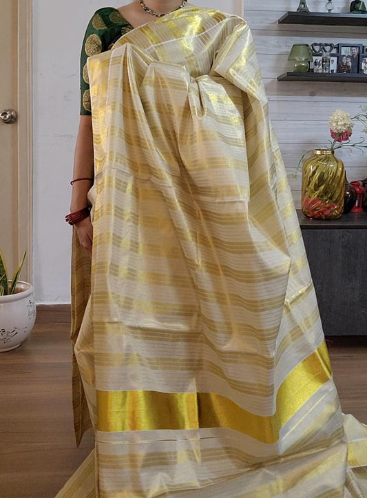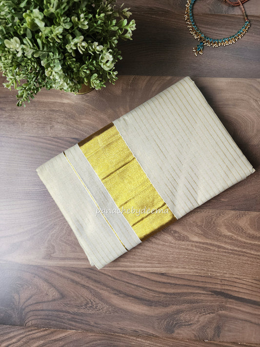 Golden Tissue Kerala thick and thin stripes saree | ON2