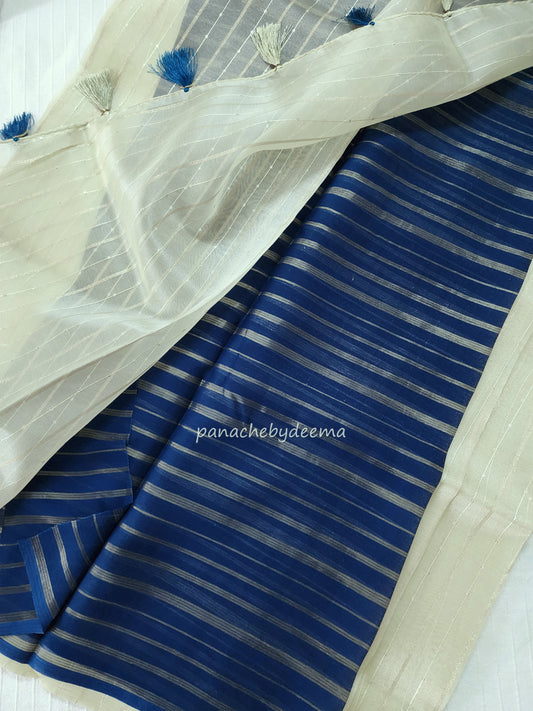 Organza glass tissue saree with embroidery and cutwork borders | Blue |GL1