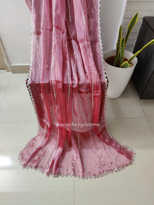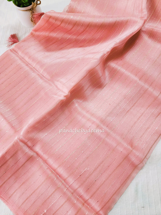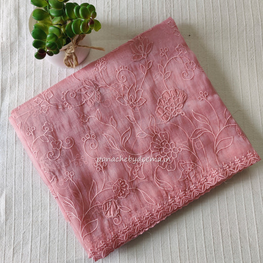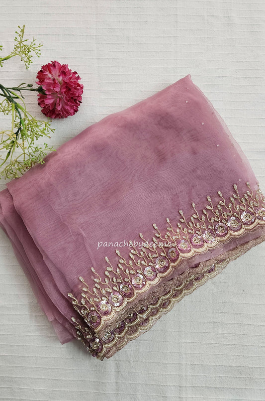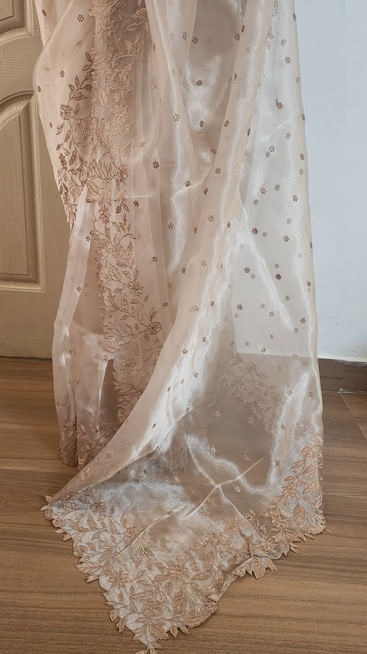 (Pre order available for restocking please whatsapp)Organza glass tissue saree with embroidery and cutwork with scalloped borders() | Peachypink|GL4