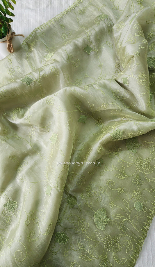 Tissue organza saree with applique work and embroidery |Light Pistah Green| AST5