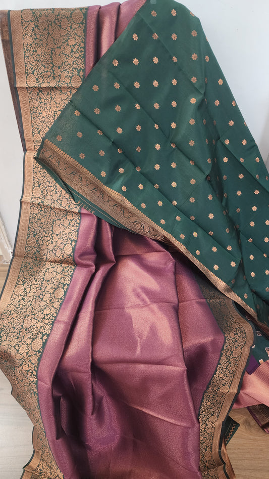Copper zari woven soft semi silk saree with contrast border and blouse | Purple with with dark green border |PA123