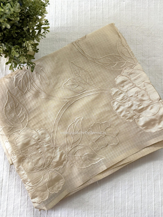 (Available on prebooking whatsapp 8296837556)Silky Kota saree with applique work| Light chikku shade| KAP12