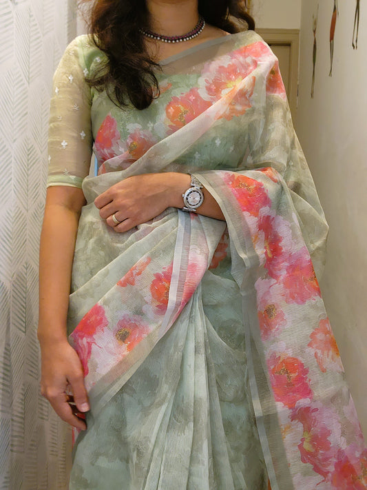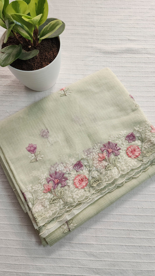Kota saree with embroidery and scalloped borders| Light green |KT2