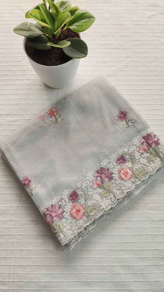 Kota saree with embroidery and scalloped borders| Powder blue |KT3