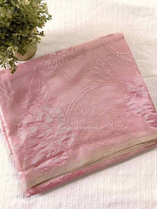 Silky Kota saree with applique work | Pink | KAP10