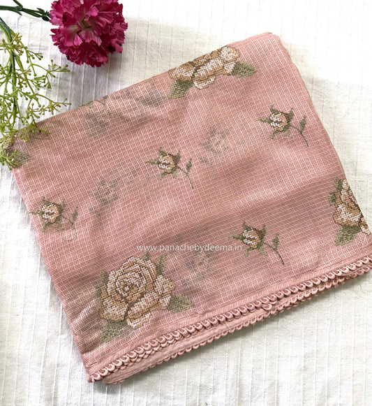 Silky Kota saree with cross stitch embroidery and lace detailed borders|Peach |SL1