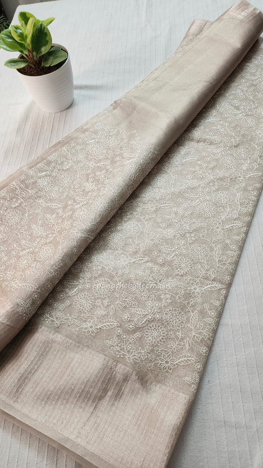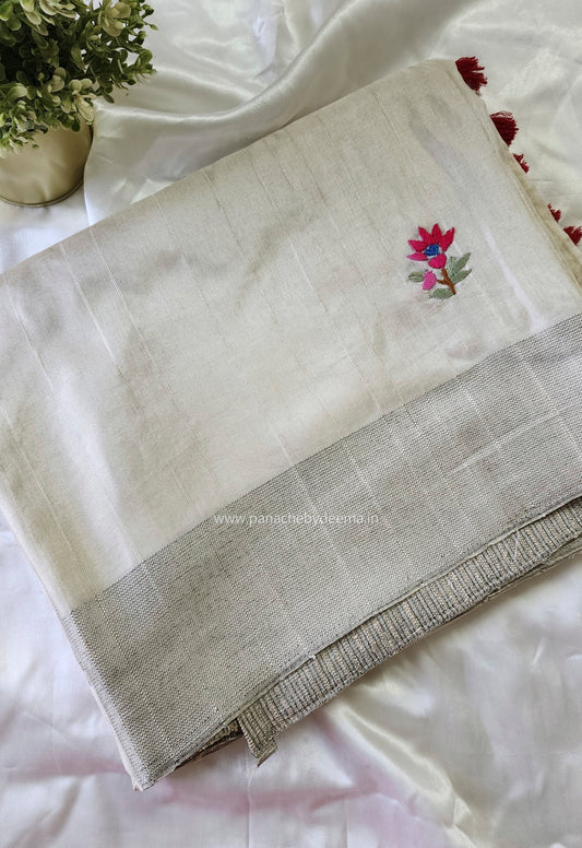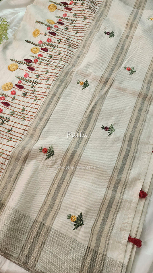 Soft linen tissue silk saree with hand embroidery | Off- white | LTS1