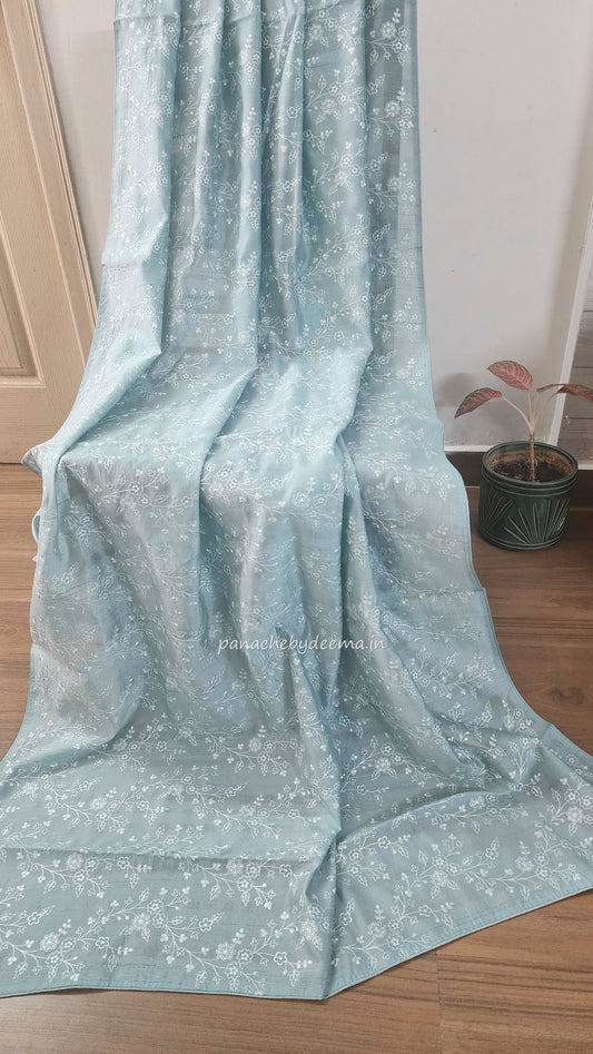 Pastel semi raw silk saree with embroidery| light sea blue | PSTL7