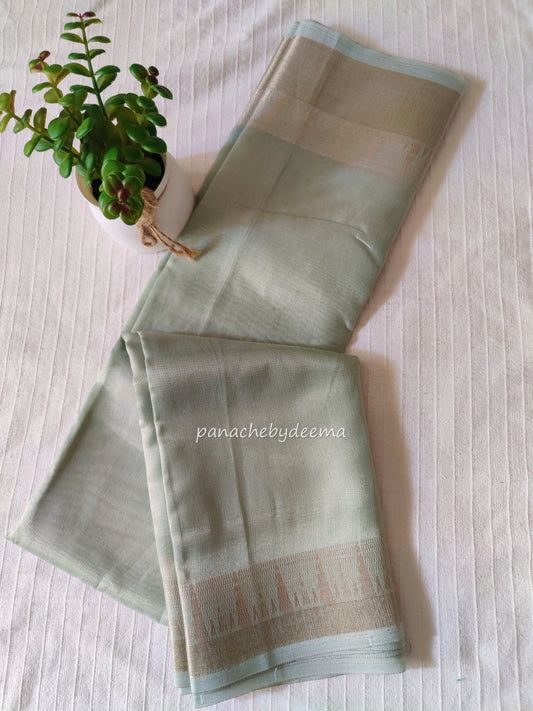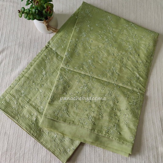 Pastel semi raw silk saree with embroidery|Pastel green | PSTL5
