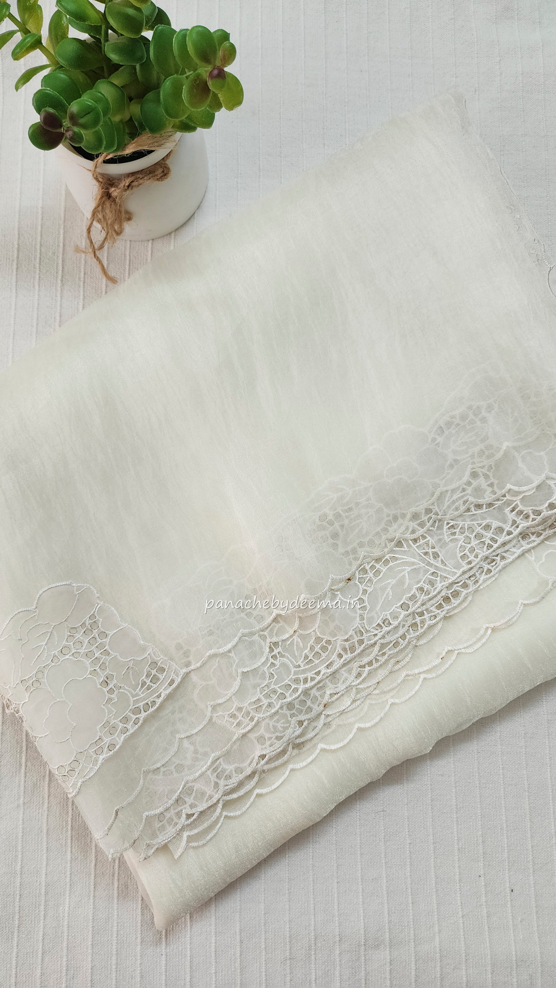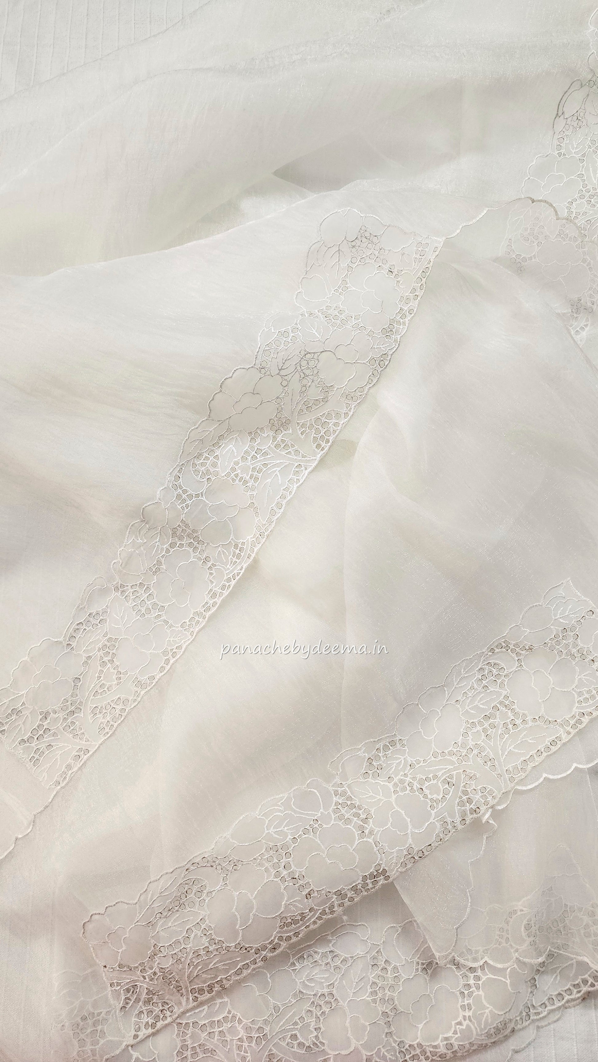 Tissue orgnaza saree with scallopped and cutwork borders | HC100 |Milky white/Offwhite