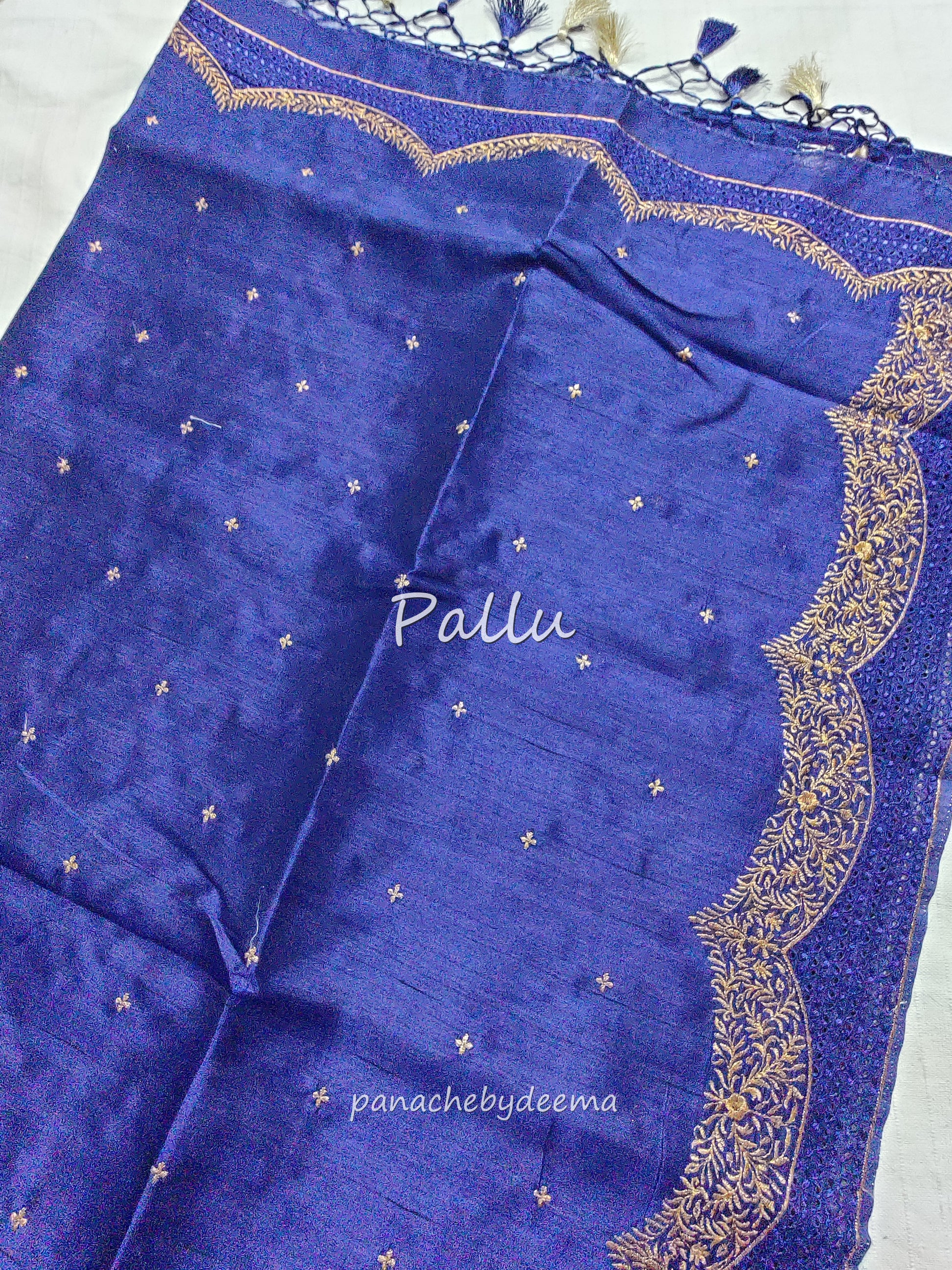 Semi raw silk designer saree with cut work borders and embroidery | Dark Blue | DY6