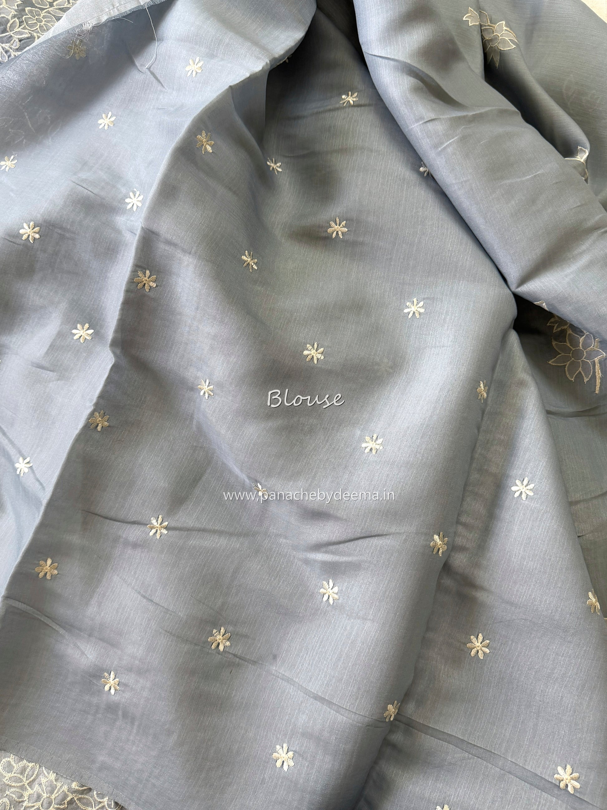 Semi tussar applique cut work saree with scalloped borders | Slate blue| SOT1